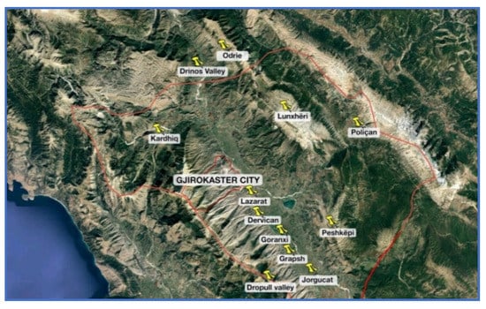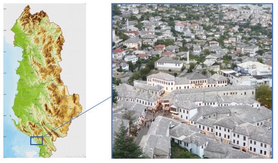 The city of Gjirokastër is located in southern Albania, situated in a valley between the Mali i Gjerë mountain and Drino river, at 300 meters above sea level (Figure 1). Known also as the Stone City, in 2005, Gjirokastër was announced a UNESCO (The United Nations Educational, Scientific and Cultural Organization) protected site defined as “a unique example of a well-preserved” Ottoman town [1] with a building stock mostly dating from the 17th and 18th centuries.