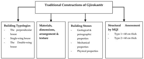 At the same year, Kamberi [4] investigated the building techniques of Gjirokastër buildings of the 18-19th centuries. The main construction materials were also studied by [5,6], mostly by visual assessment and observations. Other studies were focused on the identification of the architectural features and restoration of important buildings [7,8,9,10] and ethnographic values of the city [11,12], byzantine churches and monasteries [13,14], and other important values. Nevertheless, there is a lack of research about the mechanical characteristics of the construction materials used in Gjirokastër.