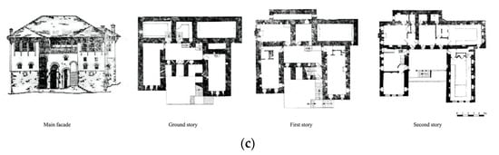 Examples of the double-wing building: (a) Babameto Building (1885), (b) Zekate Building (1812), (c) Skëndulaj Building (1823) (adapted from [3]).