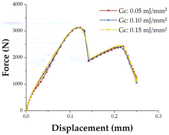 The load–displacement curves of the established numerical model with different critical energy release rate of the cohesive elements.