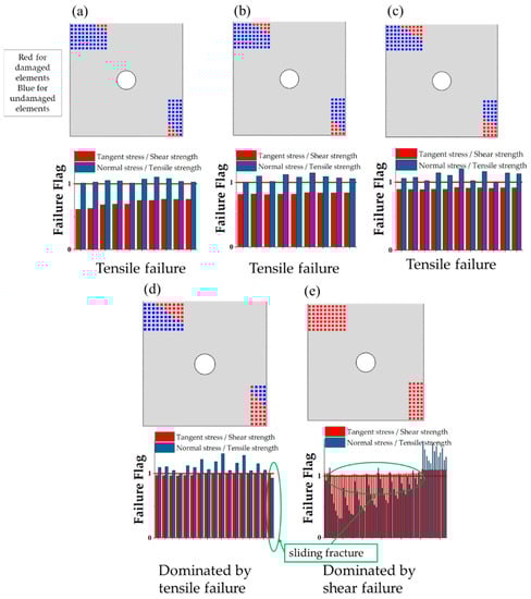 11]. Once certain stress reaches the corresponding strength, the entire fastener element fails and releases all the stress. For the fastener elements in the DZB area, the secondary bending phenomenon is not obvious, only the shear failure is considered, and the shear strength is fitted by the load–displacement curves of the experiment for lack of data and the value is 110 MPa.