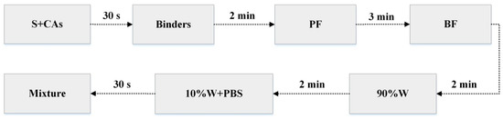 To ensure uniform fibre dispersion, the mixing time of the concrete was extended appropriately, as depicted in Figure 2. After mixing, the mixture was cast in a 100 mm × 100 mm × 100 mm mould and vibrated on a vibrating table for 15 s. The concrete specimens were demoulded after 24 h of casting. Thereafter, the specimens were cured in a standard curing room at a temperature of 20 ± 3 °C and a relative humidity of 95% for 60 days. Finally, the specimens were sealed with epoxy resin before erosion, leaving only one surface for the one-dimensional transport of ions.
