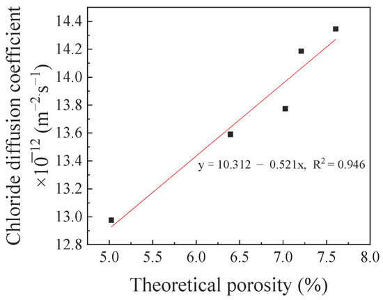 The relationship between chloride diffusion coefficient and theoretical porosity.