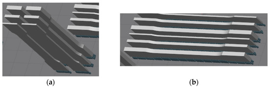 Different scanning strategies were used to produce components by the SLM method. By applying these strategies, we obtained a finer grain structure [20,21]. In this way, it is possible to produce components with thin walls [22]. Parts for our experiment were made using a “strip” strategy of scanning (Figure 2).