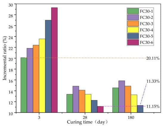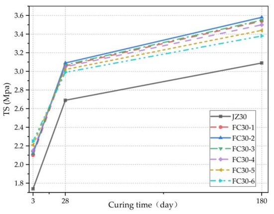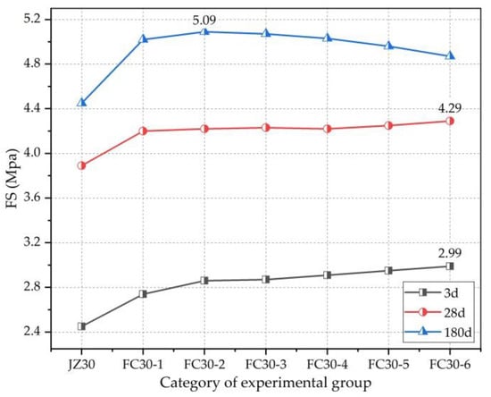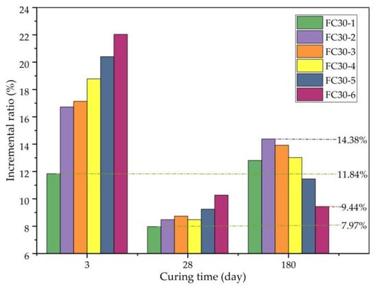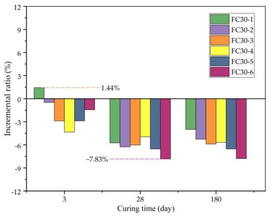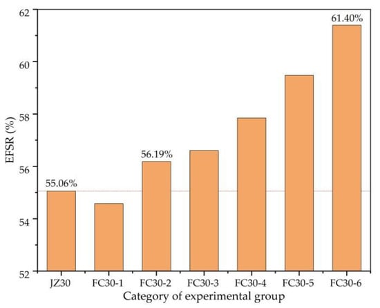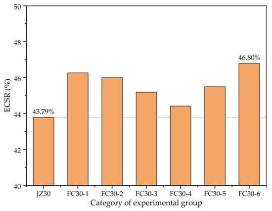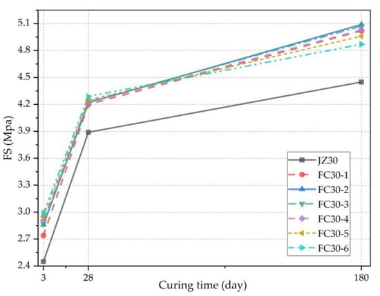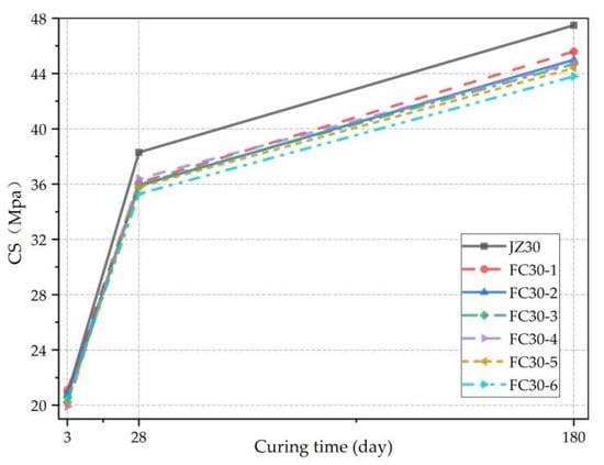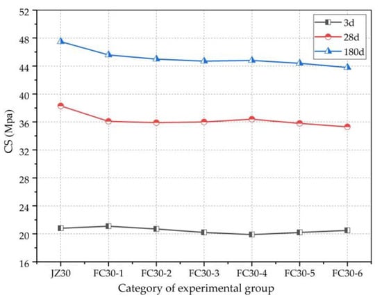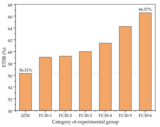 - The ESRs of the CS, TS, and FS of G-GRC were all improved. For TS and FS, the ESRs increased while the TS and FS of G-GRC at all ages increased. In contrast, for CS, the ESR increased while the CS of G-GRC at all ages was reduced by different degrees. As a result, the increase in the ESRs of concrete cannot represent the improvement in the mechanical properties.