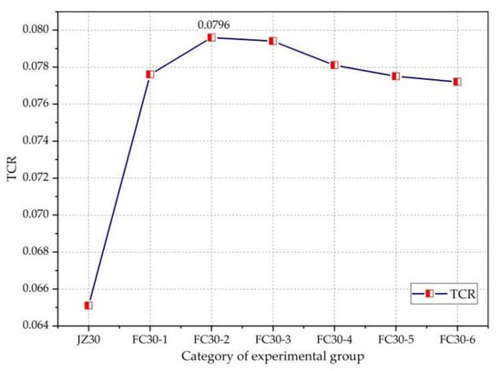 - According to the compression and tensile tests, owing to the substantial increase in the TS, the TCR of G-GRC was significantly improved. The TCR of G-GRC in the best-graded case is increased by 22.29% compared with that of ordinary concrete, which effectively avoids the problem of unforeseen crumbling damage of concrete due to brittleness.