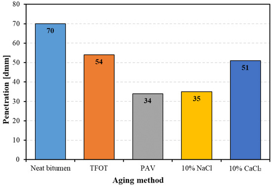 Figure 3. The penetration of bitumen before and after aging.