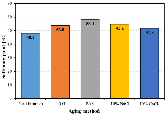 Figure 4. The softening point of bitumen before and after aging.