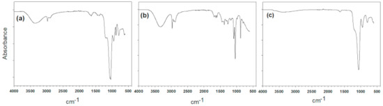 ATR-FTIR spectra of propolis-embedded zeolite nanocomposites (a), free propolis (b) and zeolite (c).