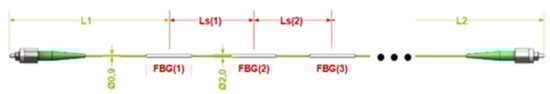 A large number of quasi-distributed FBG sensors were presented in [,,]. The aim of the testing was to develop and demonstrate an integrated comprehensive system for the monitoring of thermal shrinkage of the roadway surfacing. The technology has been used for measuring the temperature, strain, and deflection of surfacing since 2003.