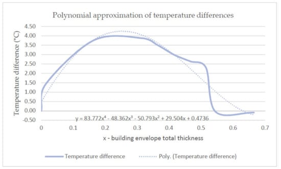 Figure 16 presents the implementation of the polynomial approximation of the temperature differences of the envelope.
