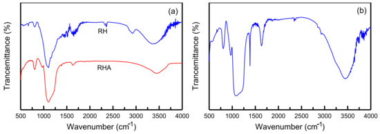 Figure 2. FTIR spectra: (a) RH and RHA, and (b) RH-GO/SBA-15.