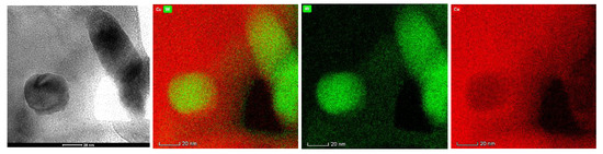 TEM image and EDS maps of W–Cu composite (J = 2 A/dm2, f = 1500 Hz, df = 40% and dr = 10%).