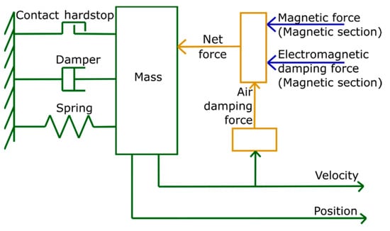 Mechanical section; the magnetic force and electromagnetic damping force from magnetic section are taken as input, while position and velocity are generated as output.