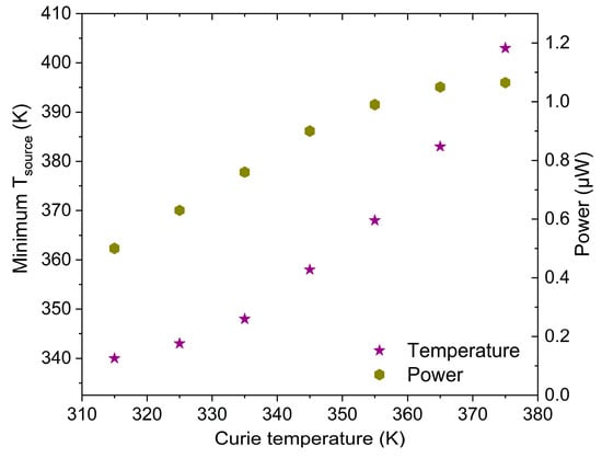 Minimum source temperature required for operation at various Curie temperatures.