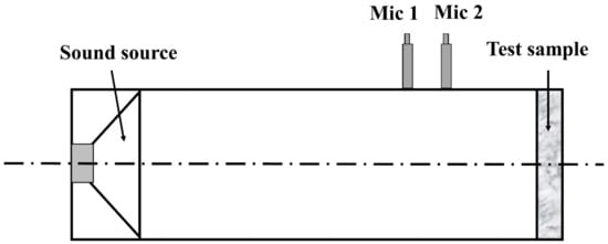 Briefly, samples were cut into two different sizes (34 and 78 mm) using a sample cutter (TFT2311 Uigeurno torielli, Australia). The 34 mm tube was used to test the sound absorption coefficient at a (low) frequency between 108 and 2390 Hz. The sound absorption coefficient at a (high) frequency from 2002 to 5889 Hz was tested using the 78 mm tube. The calibration was performed before conducting the test. Samples were mounted into the sample holder, which was clamped onto the tube for testing (Figure 1). For each material, three samples were tested in each tube size to cover the whole frequency ranged between 108 and 5889 Hz. The noise reduction coefficient (NRC) of all the materials were calculated according to Equation (3) [28].
