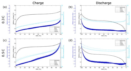 14]. Taking these mechanisms into account, this study uses the temperature and gas pressure behavior of a NiMH battery when subjected to AC frequency overlay to assess the effect on battery aging.