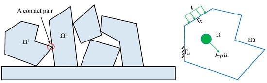 To minimize the total potential energy of the block system, the computation of α (u, v) from V1(Ω) × V1(Ω) to R defined in Equation (4) is inevitable, which can be accomplished in the framework of VEM theory. Referring to [47], two projectors Π∇u: V1(Ω)→P1(Ω) and Π0u: V1(Ω)→P1(Ω) are respectively defined using the orthogonality conditions: