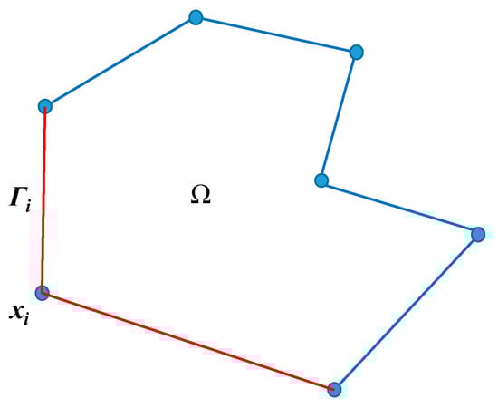 Sukumar and MalsCh concluded the properties required for Ni to develop an effective PFEM [38]. As shown in Figure 2, a block Ω has n vertices located at xi and its boundary is composed of n straight edges. The red edges with vertex xi are denoted by Γi. Ni should be satisfied.