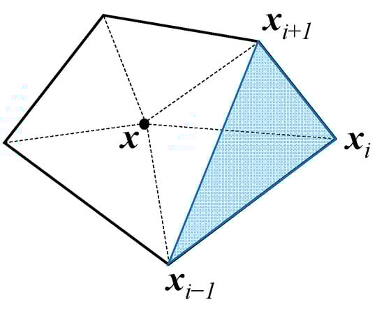 where x1, x2, …, xn are the vertices of the polygon arranged counterclockwise and A(xi, xj, xk) represents the area of a triangle connecting three points, such as in Figure 3. By observation, the basic principles required for Ni are completely satisfied by Definition (19).