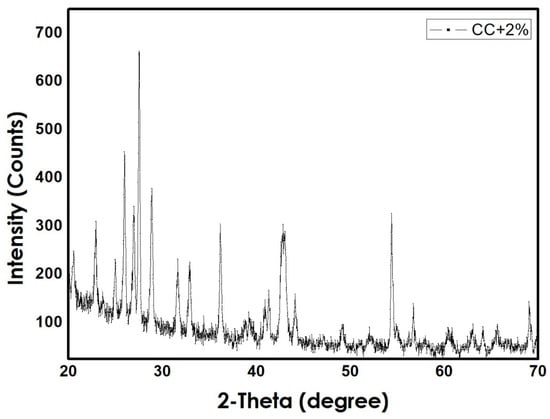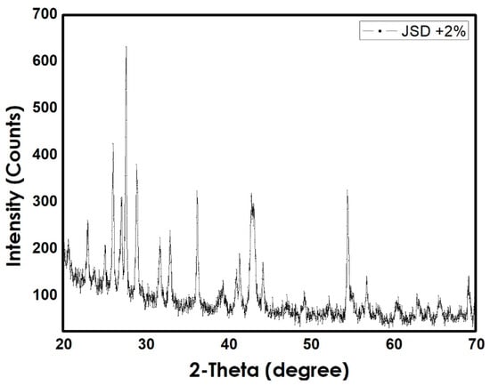 XRD pattern for JSD + 2% Fe3O4 composite.