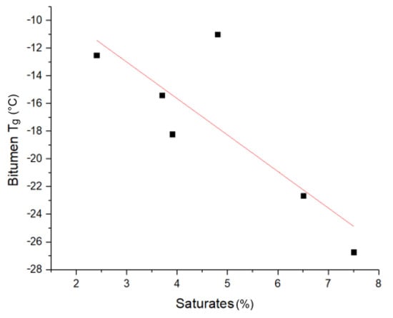Bitumen glass transition temperature (T) correlation with saturate content.
