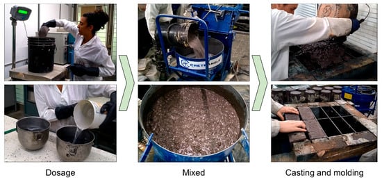 Figure 3 presents the production process of the alkali-activated blocks, which was based on the mixing proportions defined in Table 3.