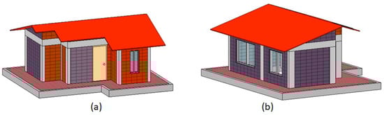 Architectural design (virtual modeling) of the eco-house prototype: (a) front view and (b) rear view.