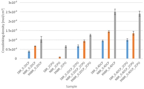Influence of the carboxy-containing peroxy oligomer (CPO) addition on the crosslink density of the rubbers studied.