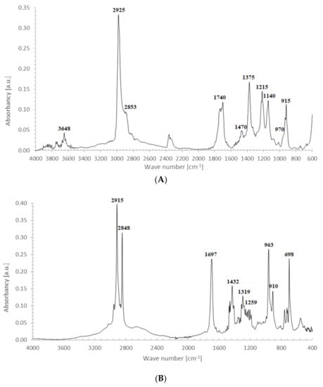 FTIR spectrum of CPO (Figure 3A) contains the following characteristic absorption peaks: