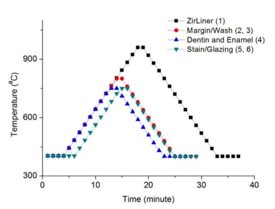 - Øilo, M.; Gjerdet, N.R.; Tvinnereim, H.M. The firing procedure influences properties of a zirconia core ceramic. Dent. Mater. 2008, 24, 471–475. [Google Scholar] [CrossRef] [PubMed]