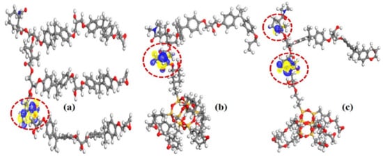 LUMO distribution of (a) Neat epoxy, (b) EP/ECH-POSS, and (c) EP/OG-POSS.