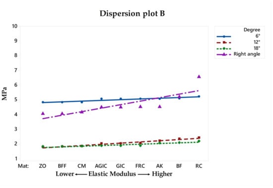 - Srivastava, B.N.; Devi, N.; Gupta, N.; Singh, R. Comparative evaluation of various temperature changes on stress distribution in class II mesial-occlusal-distal preparation restored with different restorative materials: A finite element analysis. Int. J. Clin. Pediatr. Dent. 2018, 11, 167–170. [Google Scholar] [CrossRef]