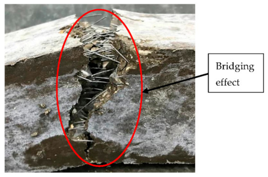 Hooked steel fiber is widely used for OPC concrete reinforcement [15,16,17]. The material properties of fibers are usually more dominant in affecting the performance of a reinforced geopolymer composite than binders [18]. The role of the fiber is very important as it is mainly reflected when the concrete starts to crack and it also improves the post-cracking performance as there is the fiber bridging of the crack section. It is said that adding steel fibers to concrete can produce a better crack control effect and improve the tensile strength before and after cracking initiates [19,20,21]. The inclusion of steel fibers could help to improve fatigue strength and dynamic resistance of the concrete. However, as the amount of steel fiber added increases, the workability of concrete will decrease [21].