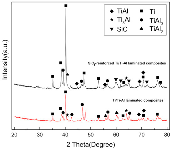 X-ray diffraction (XRD) patterns of the fabricated Ti/Ti–Al laminated composites.