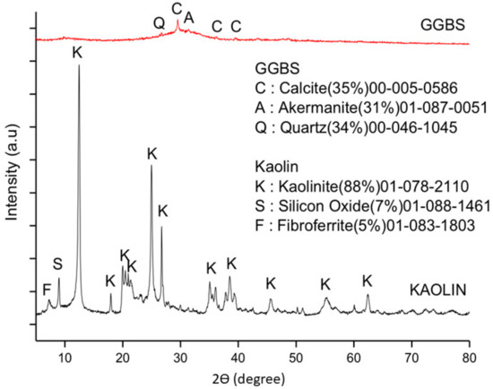 Phase composition of kaolin and ground granulated blast furnace slag (GGBS).