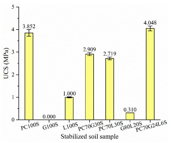 Unconfined compressive strength (UCS) of the stabilized soil samples.