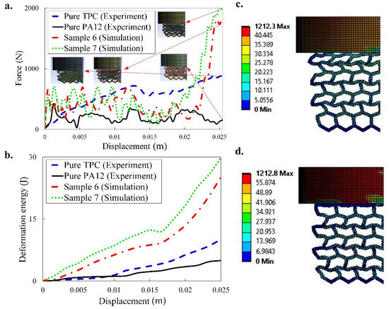 - Płatek, P.; Rajkowski, K.; Cieplak, K.; Sarzyński, M.; Małachowski, J.; Woźniak, R.; Janiszewski, J. Deformation Process of 3D Printed Structures Made from Flexible Material with Different Values of Relative Density. Polymers 2020, 12, 2120. [Google Scholar] [CrossRef] [PubMed]