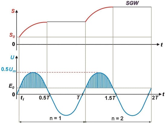 To determine the thickness of the inter-electrode gap in the period tϑ < 0, T/2 corresponding to “the positive semi-wave” of the working voltage (Figure 4), Equation (2) must be integrated in the interval ti < t < 1/2T − ti, with an initial condition S(t = 0) = S0.