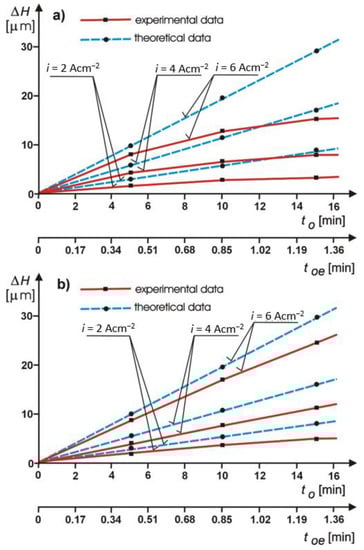 Taking into account the assumptions given above, it may be stated that Ohm’s law is satisfied in the ECDGW-AC process, while the current density (i) on the anode is defined by the following equation [22]: