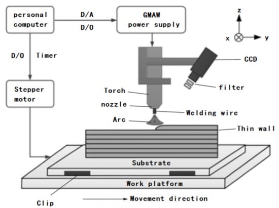Gas metal arc welding (GMAW) additive manufacturing schematic diagram [9].