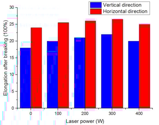 Wang and Baufeld et al. found that the mechanical properties of WAAM titanium alloy molded parts parallel to and perpendicular to the deposition direction are anisotropic. The reason is that the primary β phase is epitaxially grown throughout the sample, resulting in the microstructure and performance in all directions. Wang et al. [24,25] summarized the reasons for the formation of anisotropy and found that when the temperature drops from the liquidus to the β solidus, the WAAM titanium alloy generates the columnar β phase, the solid phase transition occurs when the temperature continues to decrease, and the α phase (lamella, Net basket shape, needle shape, etc.) precipitates from the β phase grain boundary. During the next pass of deposition, the thick β-phase at the boundary of the molten pool serves as the nucleation site, and epitaxially grows into the molten pool before solidification. The new β-phase continues to grow on the previous β-phase, so the primary columnar β-phase runs through the entire test. This kind of epitaxial growth results in significant anisotropy in both strength and plasticity of the molded part [26].