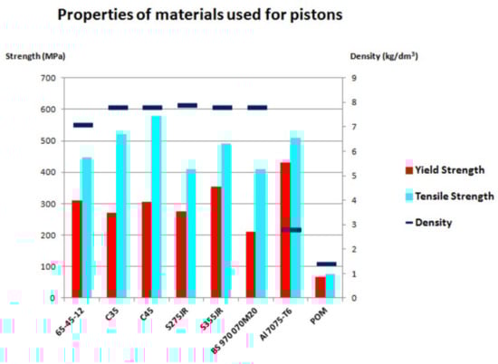 The selection of appropriate material should be carried out taking into account the shape of the designed part, both in terms of external dimensions and cell structure. The issue of choosing the appropriate material for pistons, piston rods, and cylinders has been briefly discussed in [15].
