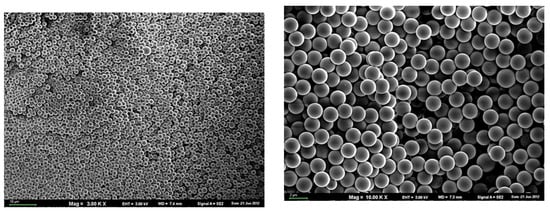 On the basis of the SEM micrographs (Figure 1), it can be also observed that the monodisperse PS microspheres are characterized by good sphericality and surface smoothness, which may indicate a lack of porous structure.