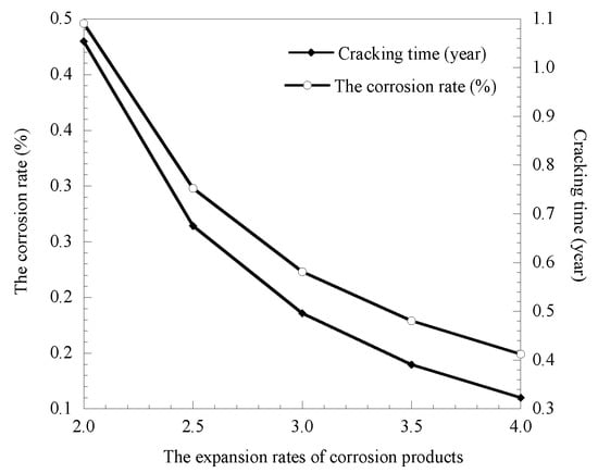 By integrating Equation (35), the formula of concrete cover cracking time is obtained: