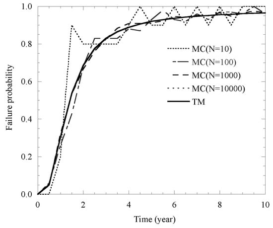- Compared with traditional methods such as the MC simulation, the proposed TM method was able to obtain higher efficiency and greater simplicity in the stochastic analysis of corrosion-induced cracking problems.