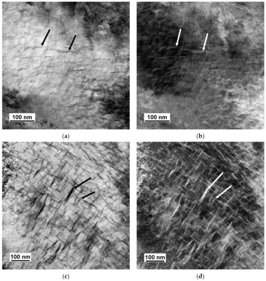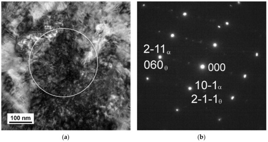 The preparation of carbon extraction replicas on Ni and Cu grids included the following steps: mechanical and electrochemical polishing, etching with 3% Nital solution, carbon deposition, etching with 10% Nital solution, and releasing the carbon replicas with particles electrolytically using a solution of 450 mL glacial acetic acid, 40 mL perchloric acid, and 10 mL distilled water using a voltage of 30 V. The carbon replicas were placed on Cu and Ni-grids. Thin foils were prepared by focused ion (Ga) beam in scanning electron microscope TESCAN LYRA3 (Tescan, Brno, Czech Republic).