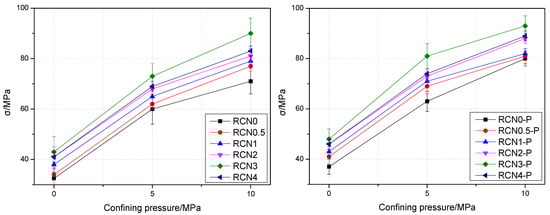 4.2.2. The Influence of Confining Pressure on Peak Stress