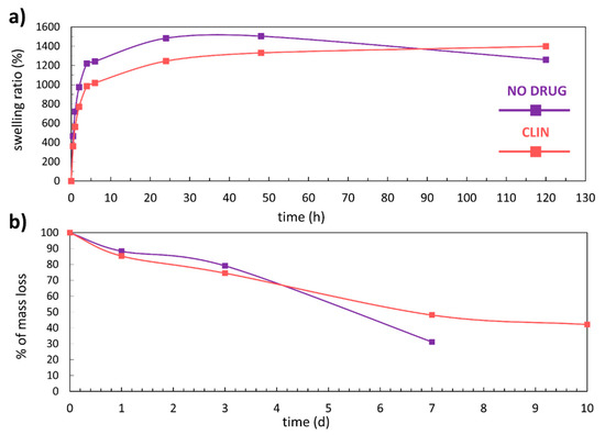 | Time (h) | Weight (g) | Swelling Ratio (%) | Weight (g) | Swelling Ratio (%) |