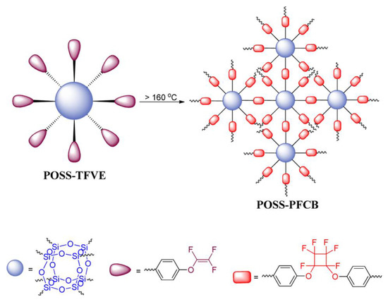 Preparation of POSS-PFCB via heat-induced cycloaddition of POSS-TFVE. Reprinted with permission from ref. [66]. Copyright 2017 ACS.